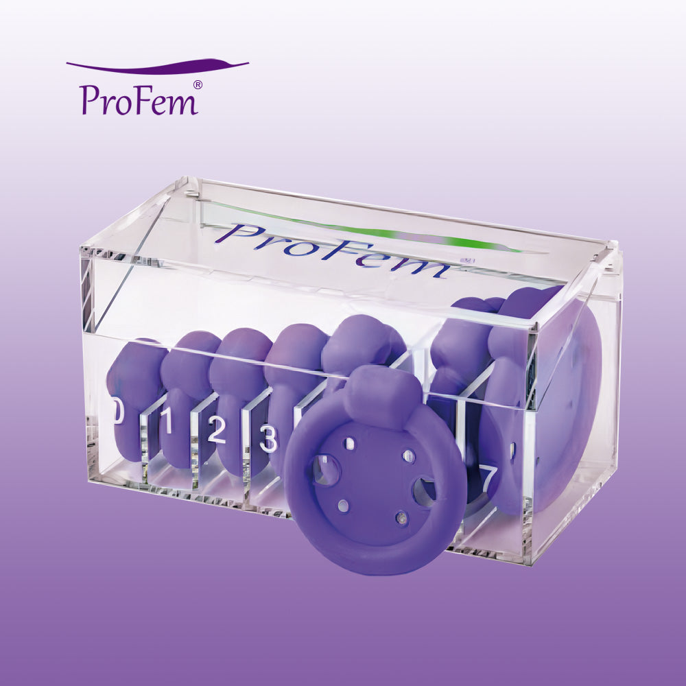 L'ajustement d'un pessaire se fait généralement en essayant différentes tailles. Les pessaires de test sont une aide précieuse pour choisir la bonne taille. Les sets contiennent les tailles disponibles et existent pour différents types de pessaires.